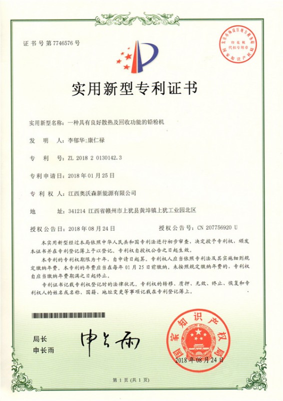 一种具有良好散热及回收功能的铅粉机